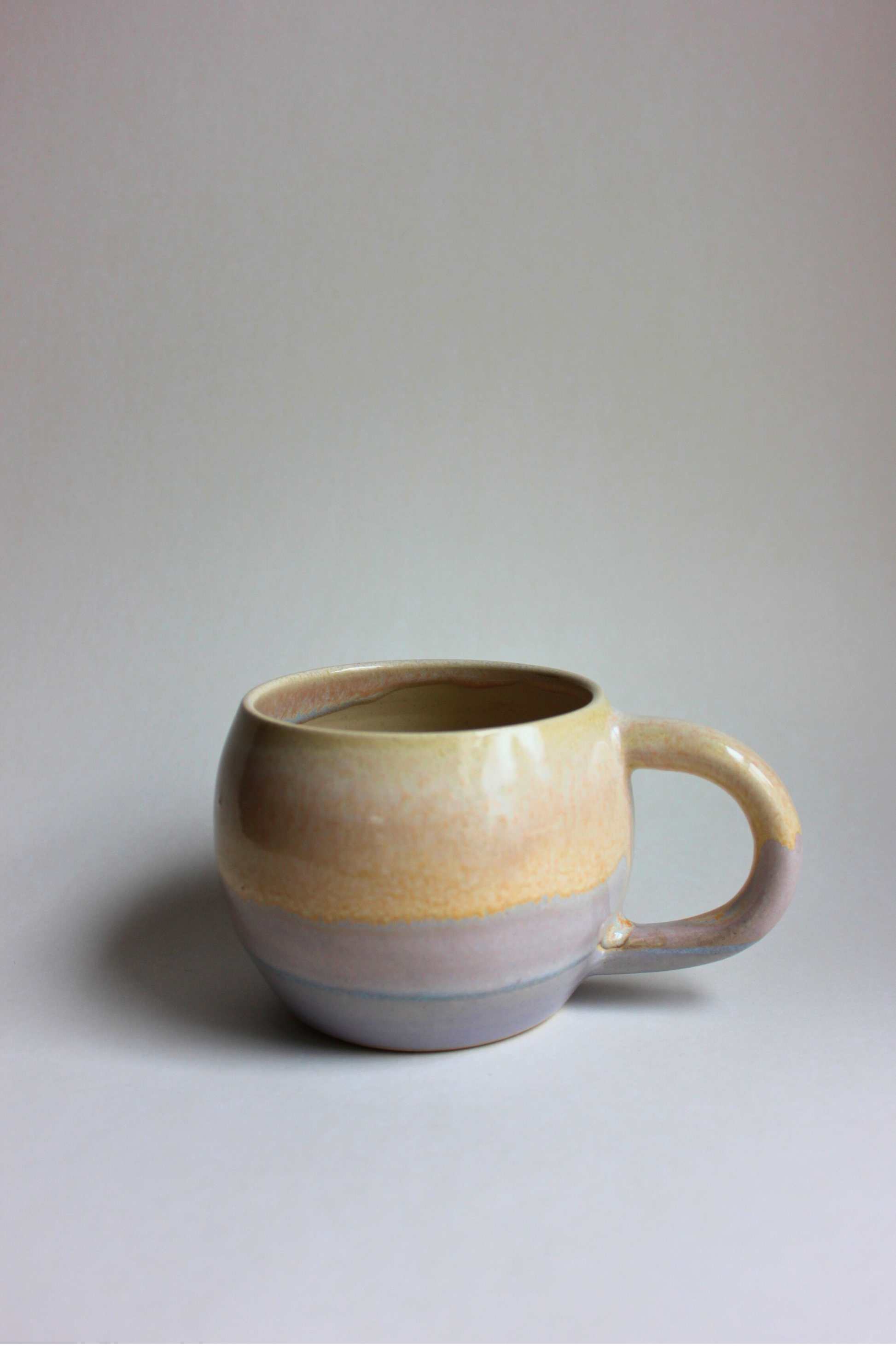 For slow mornings, long conversations, and warm drinks that deserve to be savoured—not rushed. This wide-body latte mug is handmade on the pottery wheel using natural stoneware clay and finished in a soft, layered sunrise & lilac that feels calming, coastal, and effortlessly cozy.